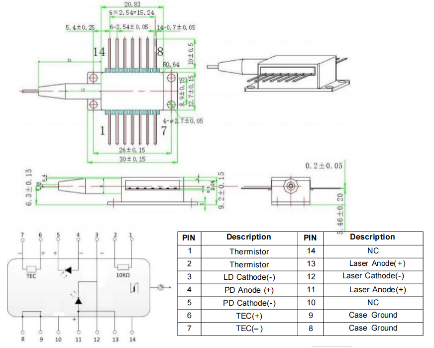 760nm 10mW DFB-laserdiode til O2-iltdetektionsmodul er en omkostningseffektiv, meget sammenhængende laserdiode. DFB laserdiodechippen er pakket i en industristandard hermetisk forseglet 14PIN sommerfuglepakke med TEC og PD indbygget.