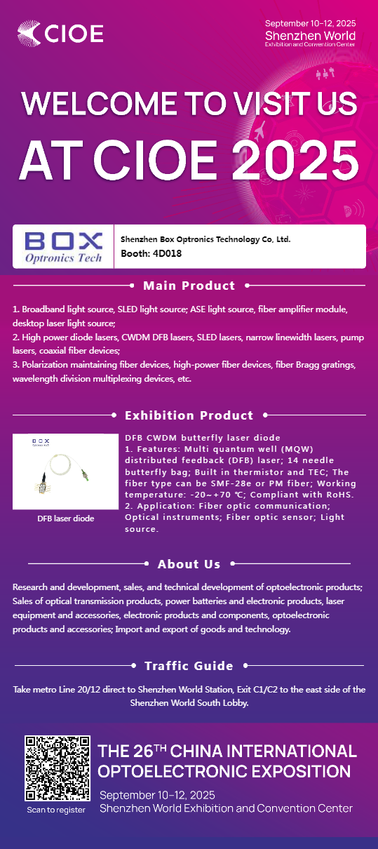 Copyright @ 2020 Shenzhen Box OpTronics Technology Co., Ltd. - China Fiber Optic Modules, Fiber Combed Lasers Producenter, Laser Components Leverandører Alle rettigheder forbeholdes.